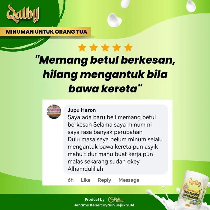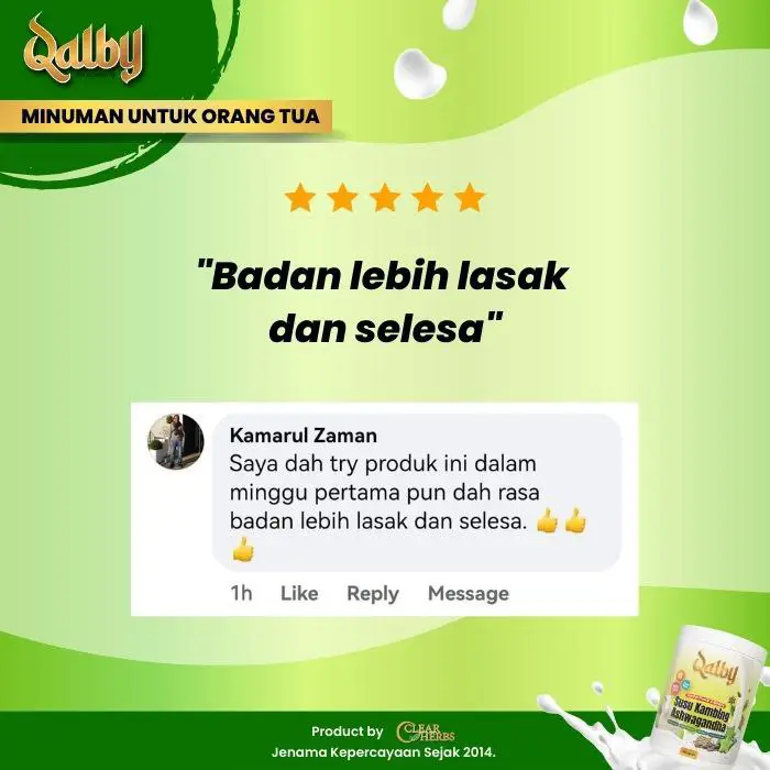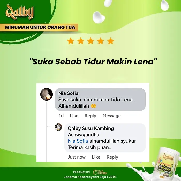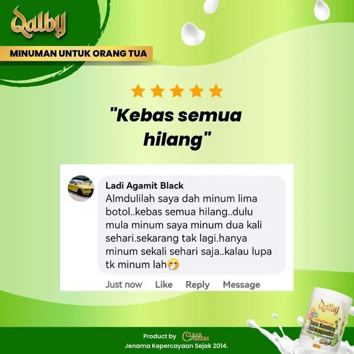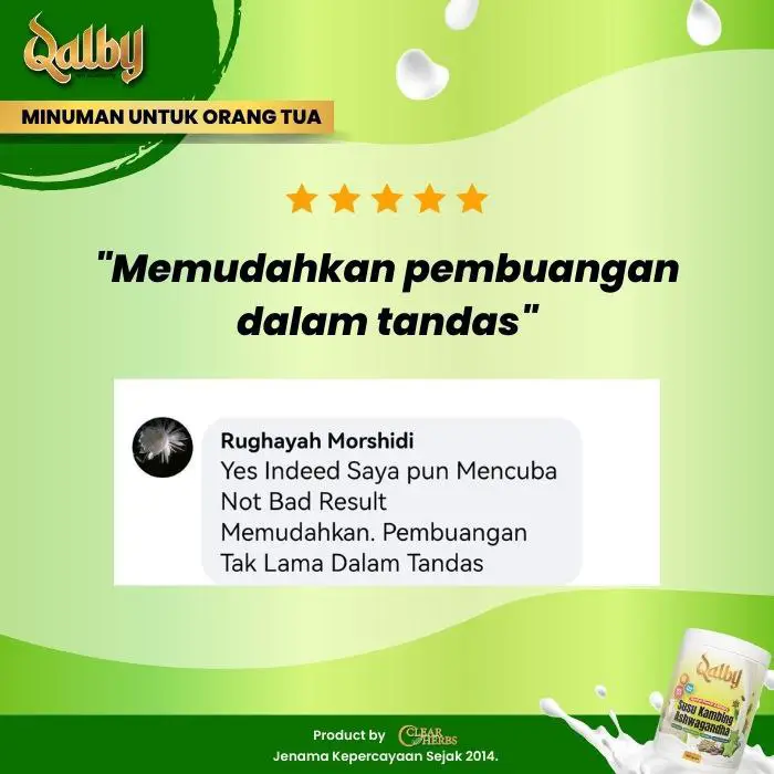 Disclaimer: Testimonials found at SUSU KAMBING QALBY and/or from Qalbysihat.com are unverified results that have been forwarded to us by users of the product. The results may vary for each individual and are not intended to represent or guarantee that anyone will achieve the same or similar results within a specific period of time.