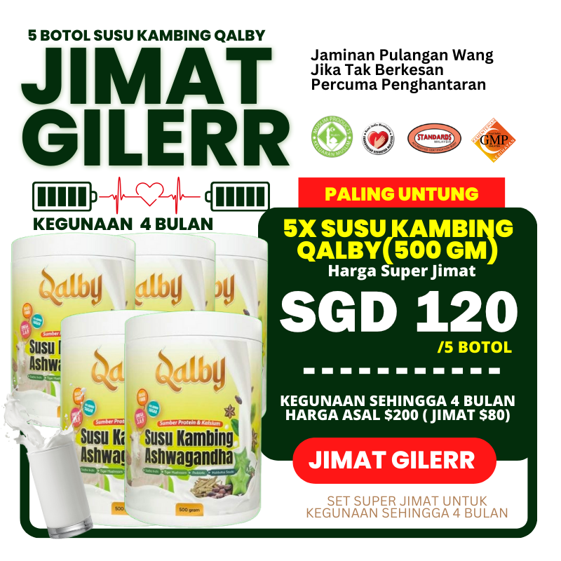 Untuk kali ni kami nak anda semua tidak terkecuali mampu dan terus bertindak dapatkan SUSU KAMBING QALBY ni dengan segera!