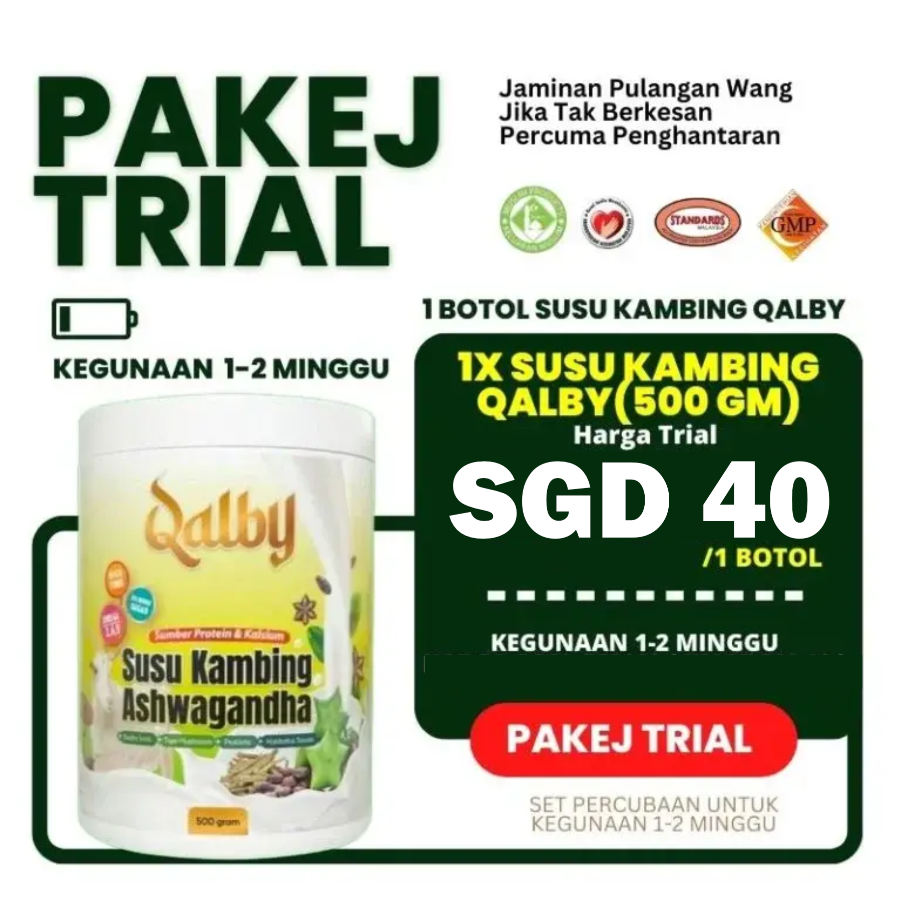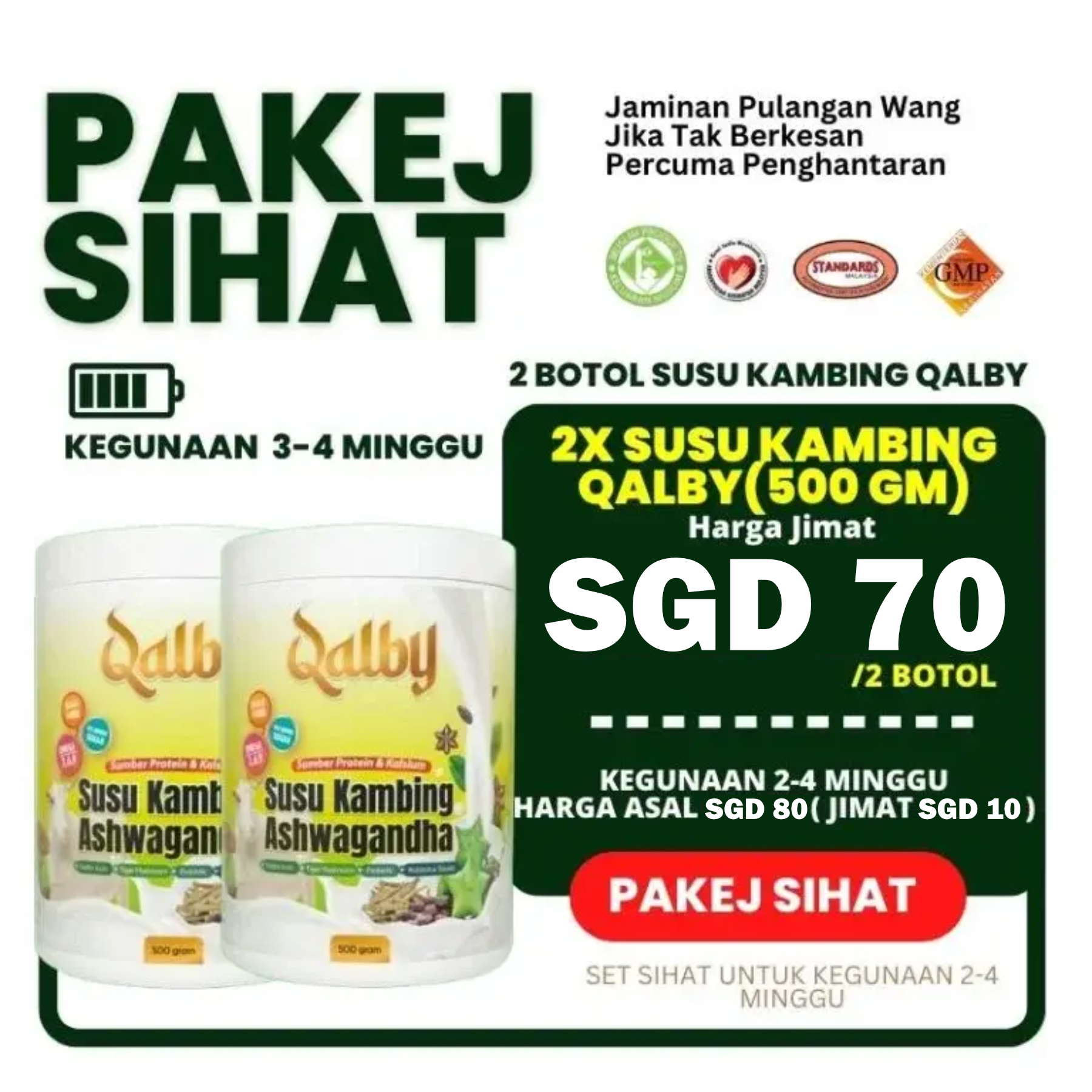 1 BOTOL SUSU KAMBING QALBY 500g. Penggunaan yang konsisten boleh bertahan selama 3 bulan untuk Super Jimat