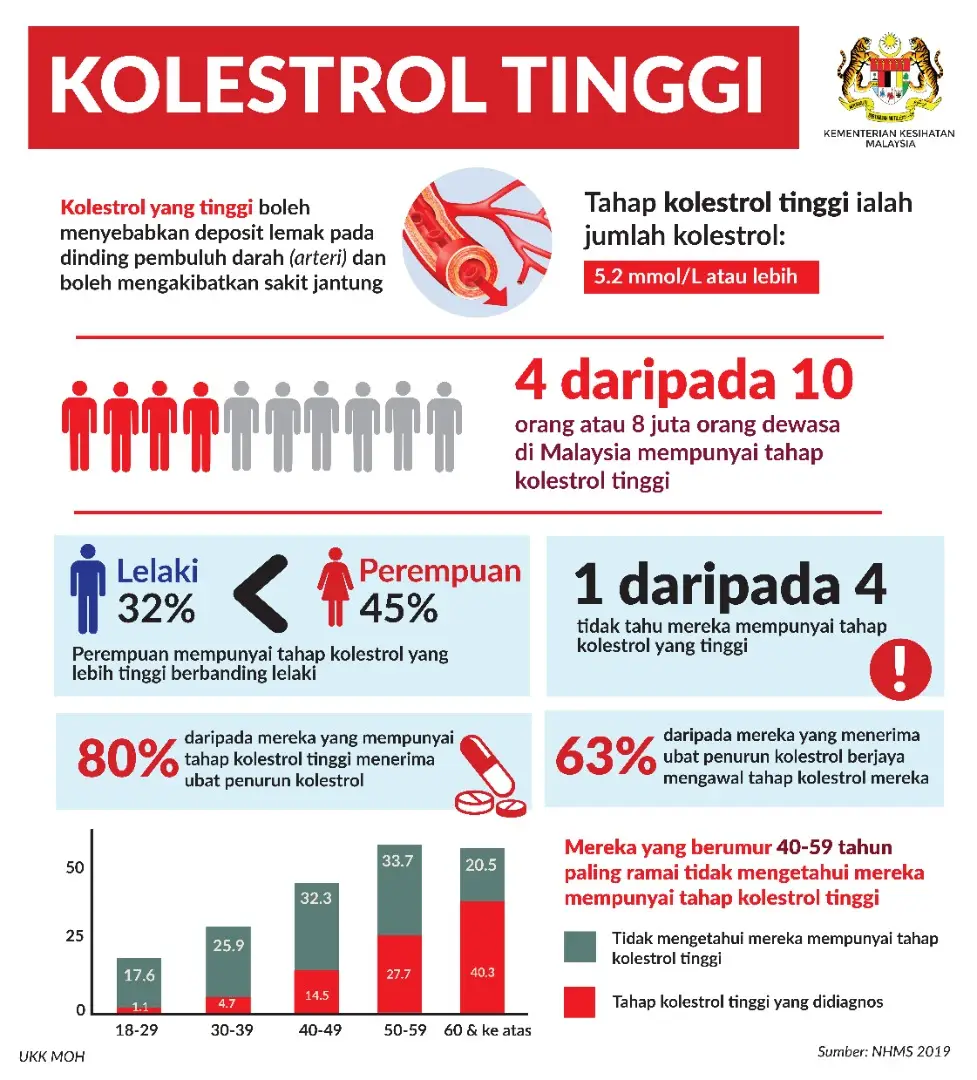 Bayankanlah, kalau kita kumpulkan 10 orang sekarang ni 4 orang yang mempunyai masalah kolesterol