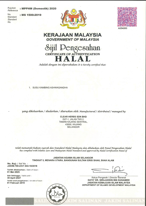 YA semestinya ada. Kami juga berdaftar dengan Badan Makanan ( MeSTI ) dan SUSU KAMBING QALBY dihasilkan dari Kilang Bertaraf GMP. Selamat diamalkan tanpa ragu-ragu dan was-was.